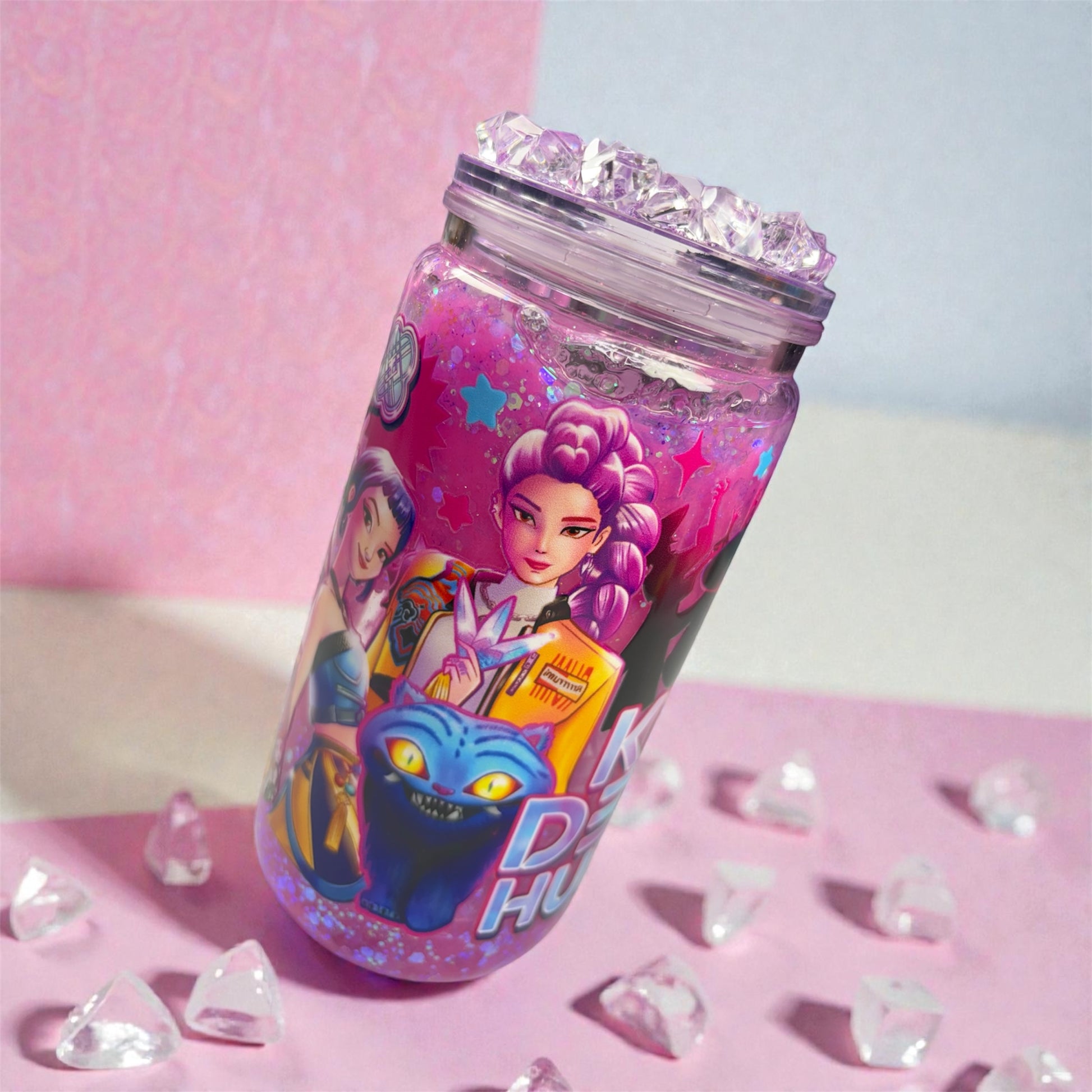 Este vaso está fabricado en acrílico de alta calidad, con un espectacular efecto lava y glitter flotante que se mueve al agitarlo, creando una experiencia visual hipnotizante. El diseño exterior está aplicado con DTF de alta definición, garantizando colores vibrantes y gran durabilidad.